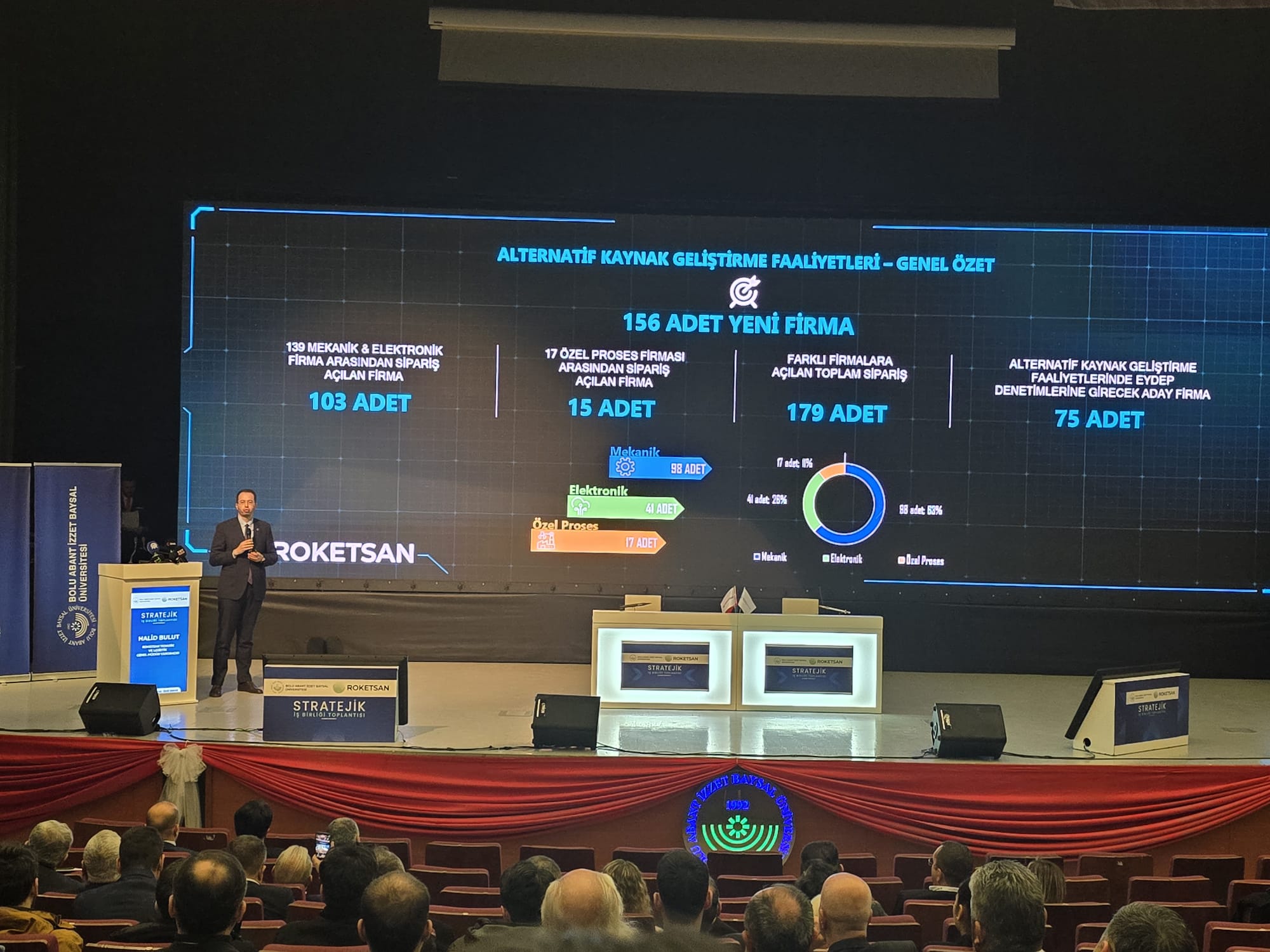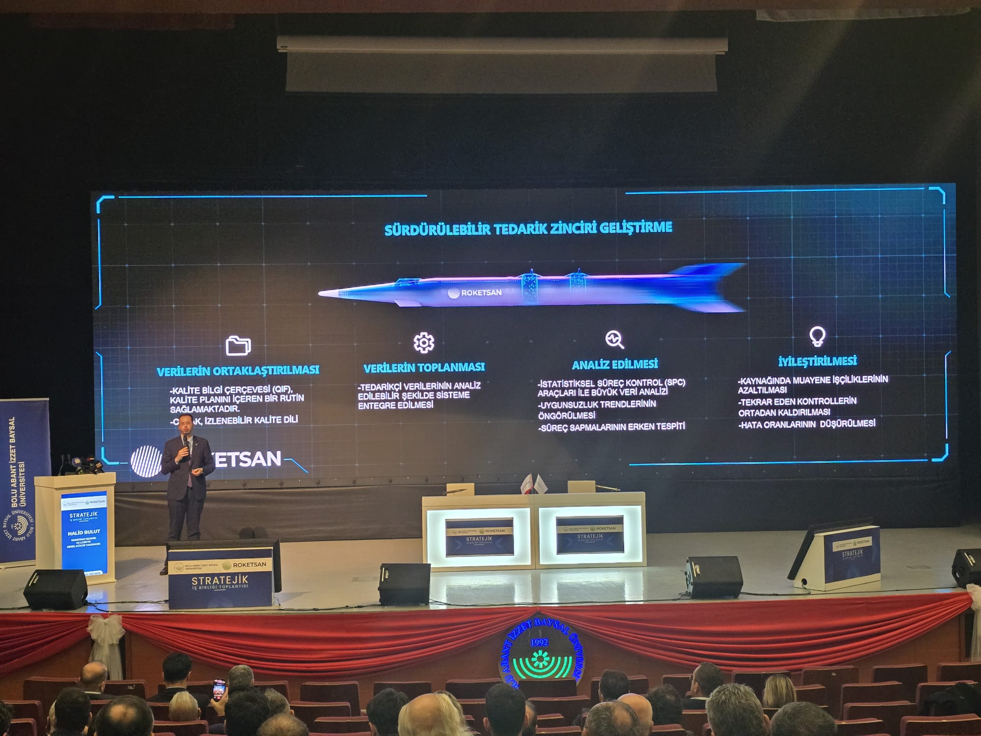 BAİBÜ Rektörü Sayın Prof. Dr. Faruk YİĞİT Hocamızın daveti üzerine Bolu Büyük Sanayi Sitesi Yönetimi adına Yönetim Kurulu Başkanımız Sayın Murat KOCA Ülkemizin savunma sanayiinin sürdürülebilir gelişimine katkı sağlamak, yerli ve milli üretim kapasitesini güçlendirmek ve sanayi ekosistemindeki işbirliklerini artırmak amacıyla savunma sanayi firmalarımızla ile yerel sanayicilerimizi bir araya getirmek amacıyla tertip edilen ROKETSAN A.Ş. Genel Müdürü Sayın Murat İKİNCİ'nin de katıldığı "Stratejik İş Birliği" Toplantısına katıldı.
