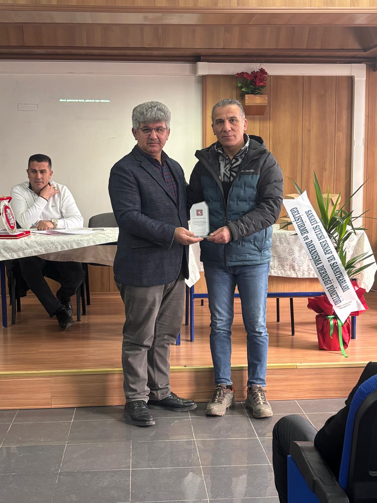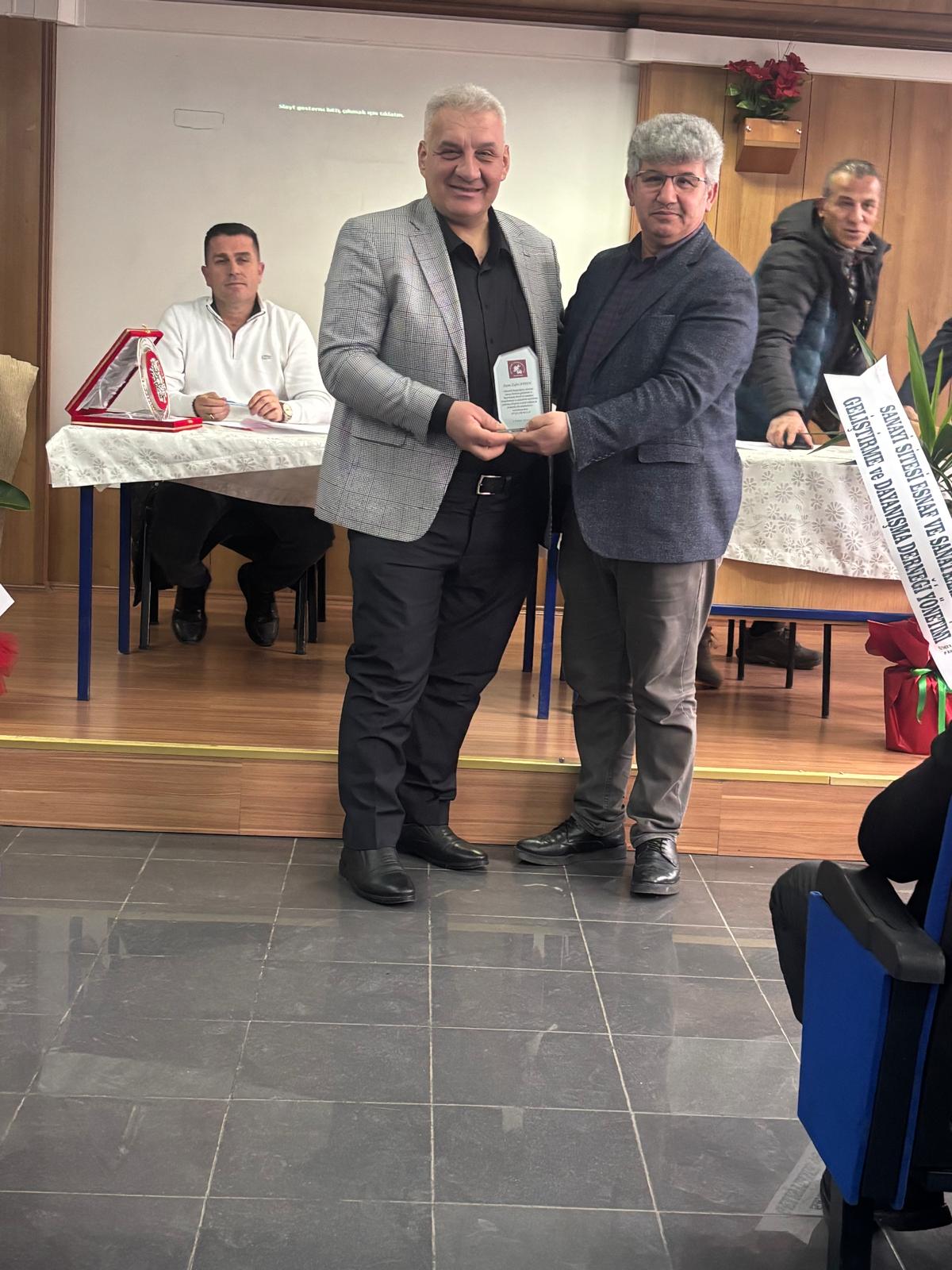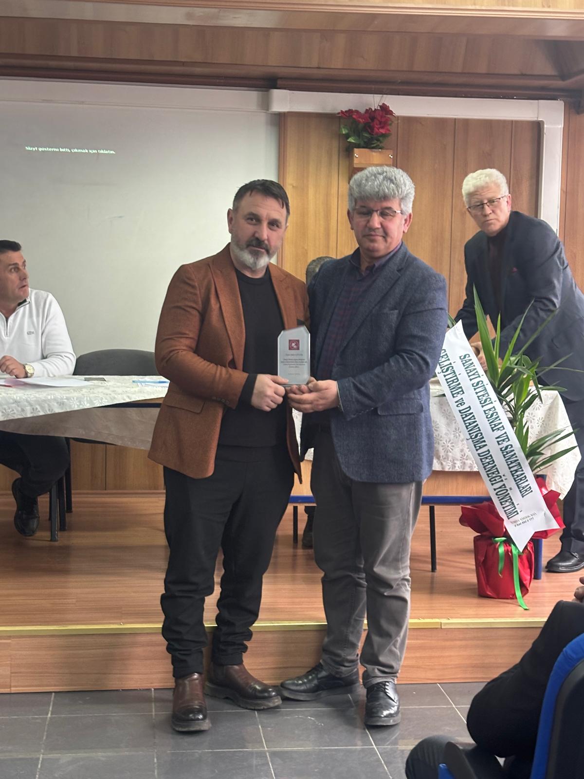 Programın sonunda Başkanımız Murat KOCA Küçük Sanayi Sitesi Yönetimi eski Başkanı Zafer AYDIN ve ekibini başarılı hizmetlerinden dolayı tebrik ederek teşekkür etti. Yeni göreve gelen Yönetim Kurulu Başkanı Sami GÜNEÇ ve ekibini de tebrik ederek görevlerinde başarılar diledi.
