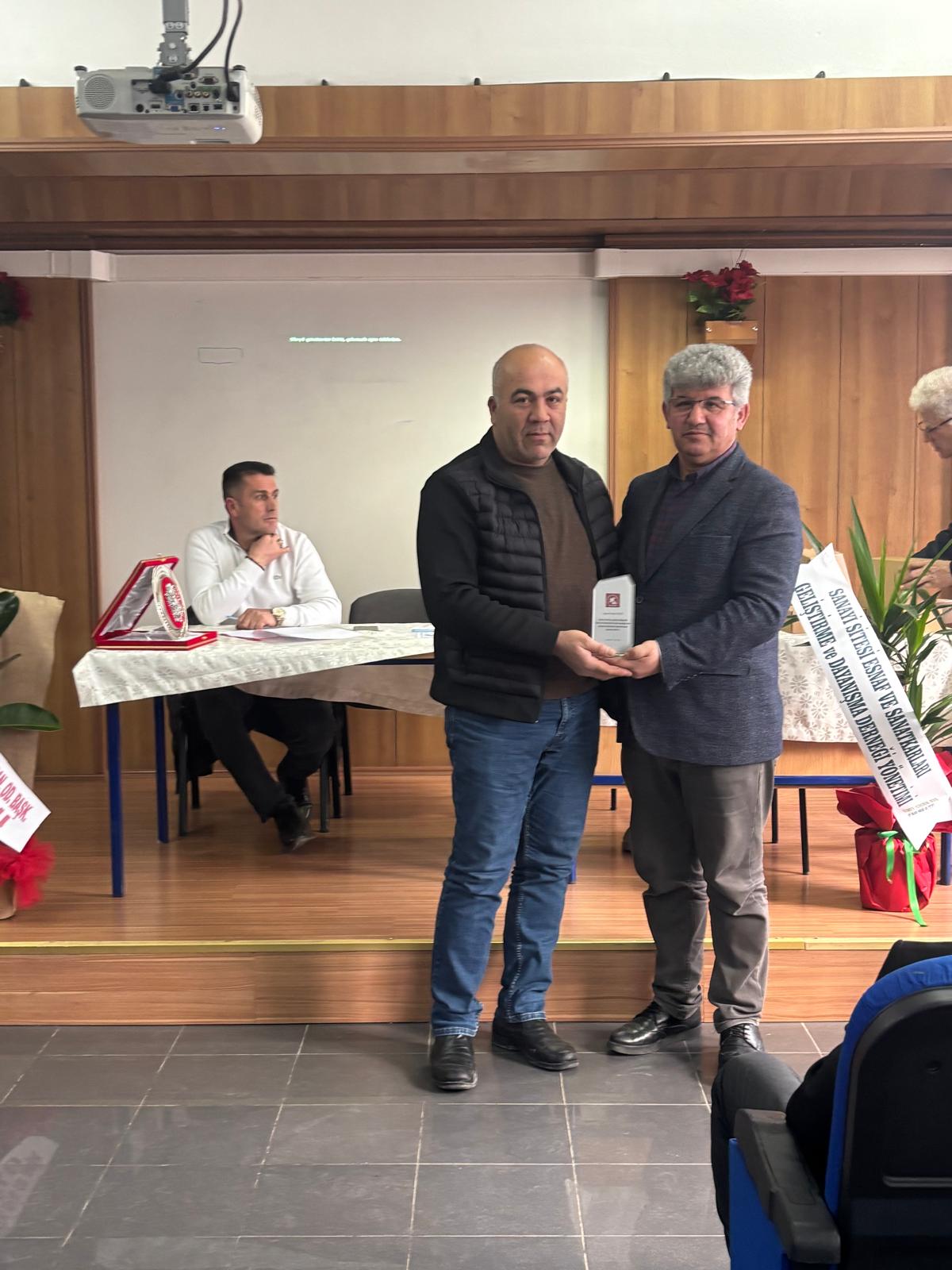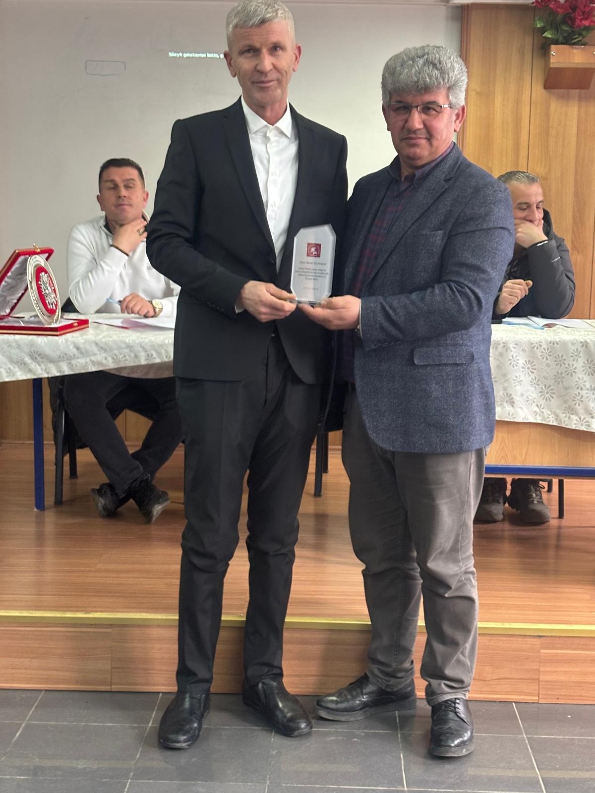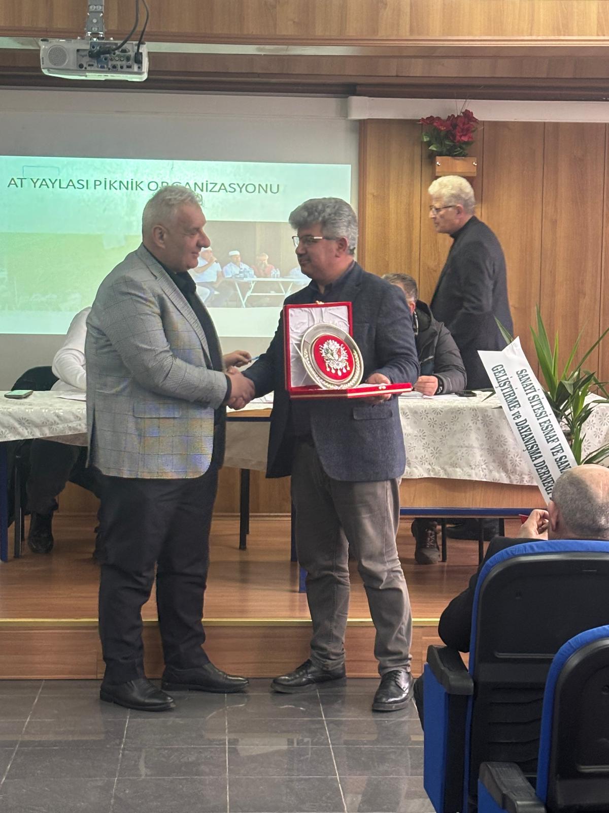 Programın sonunda Başkanımız Murat KOCA Küçük Sanayi Sitesi Yönetimi eski Başkanı Zafer AYDIN ve ekibini başarılı hizmetlerinden dolayı tebrik ederek teşekkür etti. Yeni göreve gelen Yönetim Kurulu Başkanı Sami GÜNEÇ ve ekibini de tebrik ederek görevlerinde başarılar diledi.